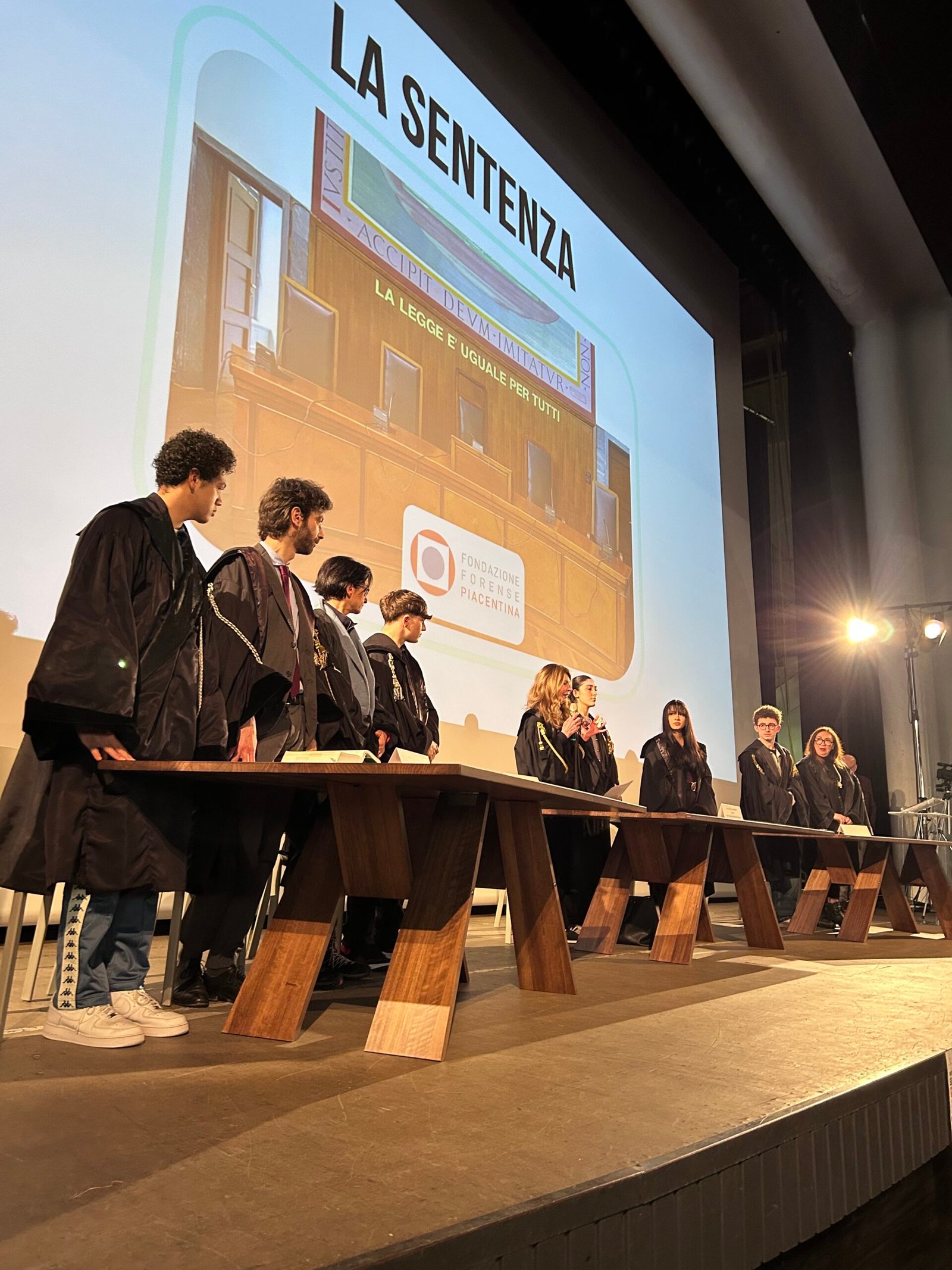 Gli studenti degli istituti Gioia e Romagnosi sono saliti sul palco interpretando accusa, difesa, giudice e Pubblico Ministero. La storia – inventata ma drammaticamente plausibile – vedeva imputato Marco Rossi, accusato di omicidio stradale in stato di ebbrezza per aver investito Stefano Verdi sulla via Emilia Pavese, dopo aver mancato una precedenza. Nei diversi ruoli si sono alternati Susanna Lupi, Elena Poli, Luigi Vannelli, Emanuele Ndreca e Thomas Certa, affiancati dagli avvocati Graziella Mingardi, Giovanna Fanelli, Lorenza Dordoni e Giulio Martini. A guidare le operazioni Barbara Mazza, della Fondazione Forense e docente del Romagnosi.